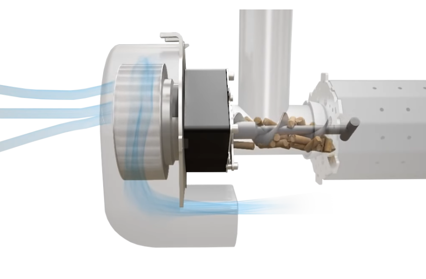 Ο εσωτερικός κοχλίας τροφοδοσίας καυσίμου παραλαμβάνει το καύσιμο pellet από τον βασικό τροφοδότη του συστήματος και το προωθεί με ακρίβεια στον θάλαμο καύσης με αποτέλεσμα την βελτιστοποίηση της καύσης και την υψηλότερη απόδοση του καυστήρα.