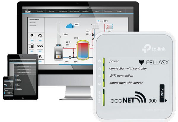 Δίνεται η δυνατότητα στο χρήστη να ελέγξει όλες τις παραμέτρους: θερμοκρασίες, κυκλοφορητές, τρίοδες θερμομικτικές βάνες καθώς επίσης και να προβάλλει τις παραμέτρους του ελεγκτή. Η απεικόνιση του ιστορικού λειτουργίας του λέβητα σε γράφημα είναι ένα ακόμα από τα βασικά πλεονεκτήματα για το χρήστη.