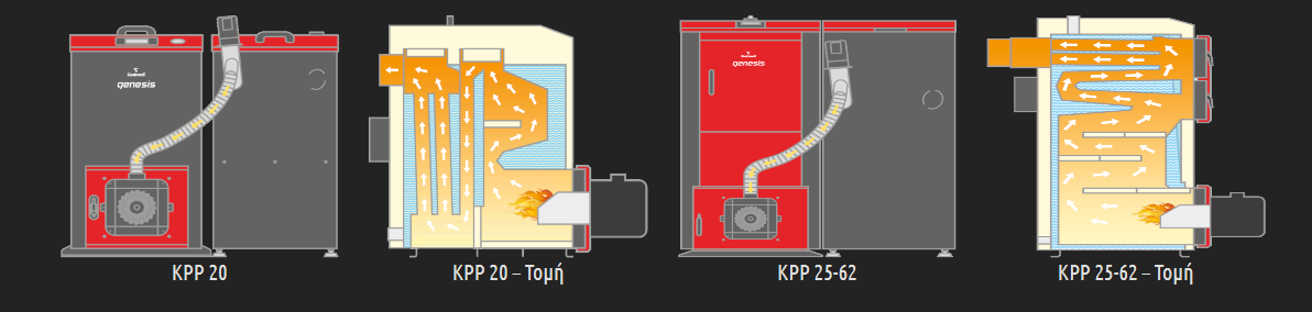 Οι λέβητες pellet Genesis Plus KPP μπορούν να συνδυαστούν με τις σειρές καυστήρων PellasX Hybrid, Motion ή Revo και είναι πλήρως επιλέξιμοι σε όλα τα προγράμματα χρηματοδότησης.