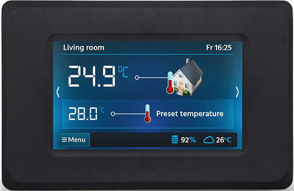 Η συσκευή είναι ένας ασύρματος θερμοστάτης χώρου με οθόνη αφής που επιπρόσθετα παρέχει έλεγχο του λεβητοστασίου μέσα από το χώρο του σπιτιού. Ο θερμοστάτης χώρου: